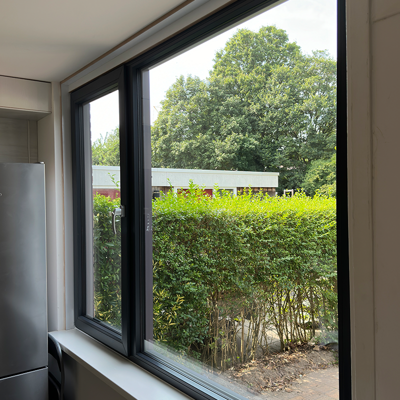 Hier hebben wij de houten kozijnen vervangen voor kunststof kozijnen. Aan de voorkant zowel de achterzijde is er triple glas geplaatst. Door het goed geïsoleerd glas verduurzaam je het huis en kunststof kozijnen zijn ook onderhoudsvrij. De klant heeft hier gekozen voor de kleur antraciet.