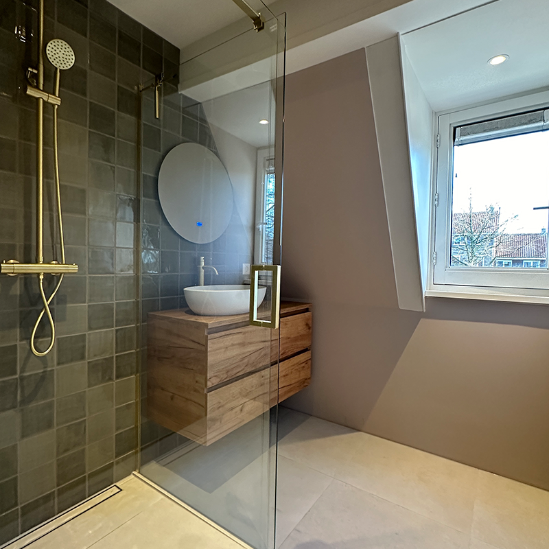 Bij deze klant hebben wij de werk/slaapkamer omgetoverd naar een chique badkamer. Voorzien van elektrische vloerverwarming, led spots, ventilatie en een inbouwnis. De oude badkamer was aan de kleine kant. Omdat er nog geen wc aanwezig op de 1e etage hebben wij hier een vrij hangend toilet gerealiseerd. De wc beneden was ook aan vernieuwing toe. Hier hebben wij ook een vrij hangend toilet geplaatst. Een mooi project en tevreden klanten. Bedankt voor het vertrouwen!