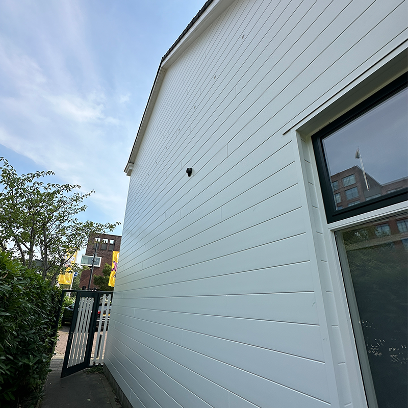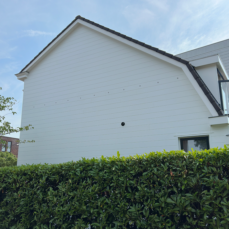 Hier was de gevelbekleding aan vervanging toe. De oude gevelbekleding bestaand van van houten planken was op sommige plekken uit gaan zetten. Hier hebben wij ervoor gekozen om de planken te vervangen voor kunststof planken van het merk Keralit.